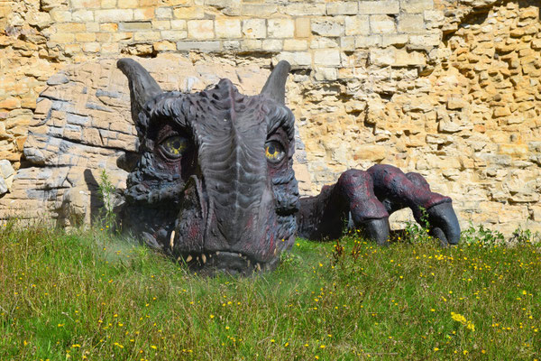 Im Lincoln Castle gönnen wir uns eine kurze Pause neben zwei Drachen. Keine menschlichen Exemplare, sondern große Kunstobjekte ragen entlang der Festungsmauer aus dem Boden, verbreiten sogar Geräusche und alle paar Minuten strömt Dampf aus ihren Nasenlöchern. Wir sind unterhalten und machen uns wenig später wieder auf dem Weg zurück zu unserem Bus. Ines stoppt noch in einem Kräuter- und Bonbonladen, wo sie durchaus kompetent beratet wird. Der hartnäckige Husten, der unsere Gastgeberin Petra die letzten Tage gequält hat, meldet sich leider auch bei Ines an. Sie wird jedenfalls fündig und kauft Thymianzuckerl, die Linderung bringen sollen. Campingplätze gibt es in Lincoln keine und der ruhige Wanderparkplatz am Ortsanfang wird entgegen unserer Erwartung doch nicht unser Schlafplatz. Am Eingang hängt ein kleines Schild, dass darauf hinweist, dass Wohnmobile nicht über Nacht stehen bleiben dürfen. Wir wägen ab und entscheiden uns, trotz fortgeschrittener Stunde noch ein Stück weiter zu fahren. Die Alternative ist ein Pub-Stop im ländlichen Umland westlich von Lincoln. Am Weg hören wir zufällig Radio, wo vor dem starken Sturmtief gewarnt wird, dass die kommenden Tage über Schottland fegt und auch den Norden Englands bereits erreicht hat. Unser Entschluss, nicht weiter hinauf nach Schottland zu fahren, sondern nach Westen in Richtung Wales abzubiegen wird durch die Nachricht weiter bekräftigt. Bereits in den vergangen Tagen haben wir gespürt, dass wir dringend noch ein Stück von dem erleben wollen, was wir unter "Sommer" verstehen.