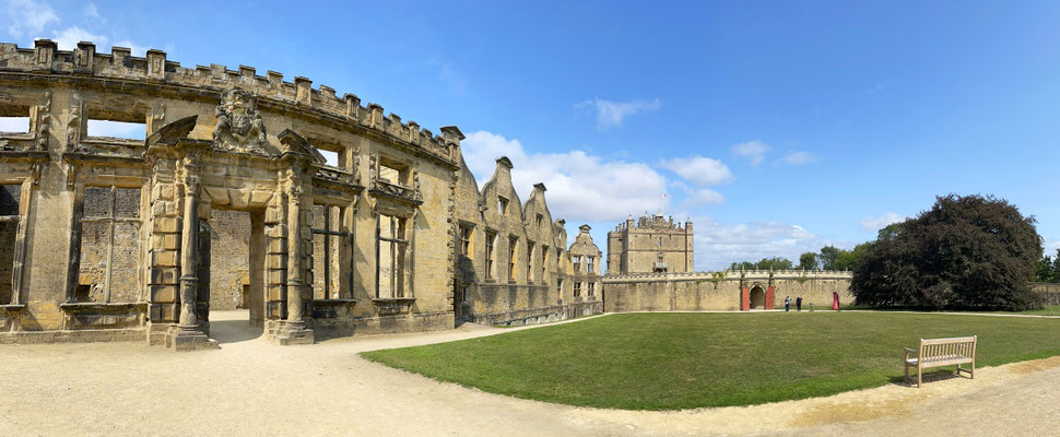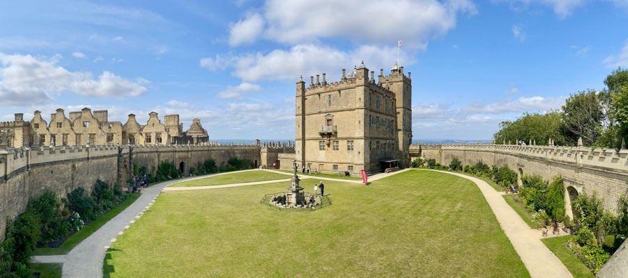 Zeitig in der Früh besuchen wir das Bolsover Castle, eine Burg im Nordosten von Derbyshire. Die Anlage, die aus den Ruinen einer Burg aus dem 12. Jahrhundert, der vollständig erhaltenen Burg aus dem frühen 17. Jahrhundert sowie Stallungen und einer Hofreitschule besteht, ist riesig. Da unsere Mitgliedskarten sowie der Aufkleber für die Windschutzscheibe, die den Zugang zu den Parkplätzen ermöglicht, gerade per Post unterwegs nach Österreich sind oder bestenfalls bereits im heimischen Postkasten liegen, bitten wir den netten Mitarbeiter im Ticketbüro um Hilfe. Der händigt uns nicht nur den Sticker aus, sondern versorgt uns einstweilen mit einer Karte und vielen nützlichen Informationen. Abermals überkommt uns das Gefühl, das hier großteils Menschen arbeiten, denen ihr Job Freude bereitet und der sie auch tatsächlich interessiert. Gutes Recruiting also bei English Heritage.