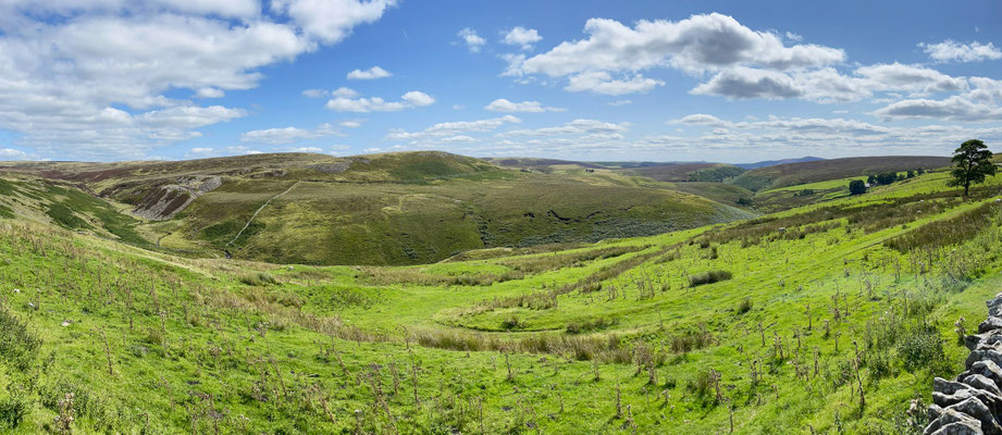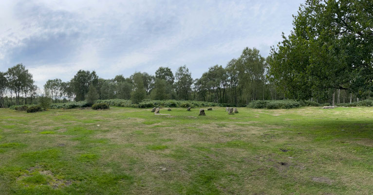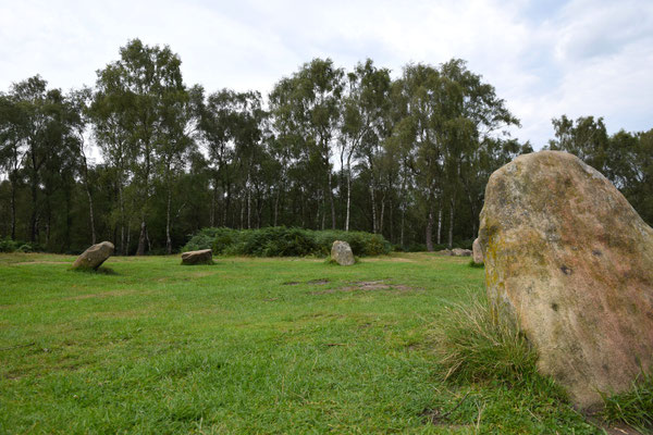 Vorbei an Chesterfield in Richtung Westen erreichen wir bald das hügelige Gebiet, das hauptsächlich von Heidekraut und Schafen besiedelt ist. Unser erster Stopp an diesem Nachmittag ist ein besonderer. Es ist der erste Steinkreis, den wir in England besuchen. Der "Nine Ladies Stone Circle" liegt ziemlich versteckt in einem Wald und ist nur zu Fuß erreichbar. So haben wir diesen mystischen Ort, der vor mindestens 3000 Jahren angelegt wurde, fast zur Gänze für uns. Gut so! Der schmale Fußweg durch den dicht bewachsen Wald, ist bereits ein Highlight. In einer Lichtung finden wir die neun Felsen, die großteils nur noch liegen. Jeder der Felsen, soll der Folklore nach, eine Frau darstellen. Zur Strafe (weil sie am einem Sonntag verbotenerweise getanzt haben) wurde alle Neun zu Stein. Genauso der Geigenspieler, dessen Monolith knapp 20 Meter außerhalb des Kreises liegt. Wir tasten die Steine ab, lauschen dem Gesang der Vögel und begeben uns auf eine Zeitreise im Geist. Wer diese tonnenschweren Felsen platziert hat und ob es vor 3000, 4000 oder noch mehr Jahren geschehen ist, ist bislang unbekannt. Das Unbekannte und Rätselhafte solcher Orte, ist es genau das, was uns besonders gefällt.