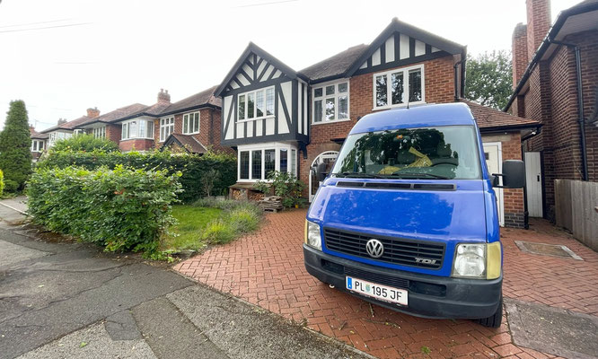 Ines navigiert uns in die hübsche Wohngegend im Süden Nottinghams, wo sich unsere Freunde Petra und Alex niedergelassen haben. Unser Bus passt exakt in ihre Einfahrt und wir werden bereits draußen begrüßt. Unser Timing passt. Während Ines und Petra ihr Wiedersehen zelebrieren, begleite ich Alex zu Fuß zum Kindergarten, um ihre gemeinsame Tochter abzuholen. Dabei mache ich mich auch gleich mit Fonzi, dem reizenden Hund des Hauses vertraut und bekomme von Alex eine kleine Führung durch den angrenzenden Park. Nach einer richtig warmen Dusche, verbringen wir den Abend gemeinsam mit Essen, Trinken und Plaudern.