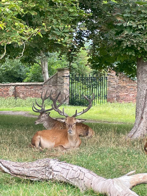 Nachdem wir am Vormittag dankbarerweise eine große Ladung Wäsche waschen dürfen, brechen Ines und ich auf, die Gegend zu erkunden. Uns gefallen die sauberen Siedlungen mit ihren Backsteinfassaden, den weißen Fensterläden und den hübsch angelegten Vorgärten. Beim Blick auf unsere Garderobe, fällt es uns trotzdem schwer, sich ein Leben hier vorzustellen. Zu sehr sind unsere Lebensgeister mit Sonnenschein und warmen Temperaturen verknüpft. Im Wollaton Park angekommen, spazieren wir zwischen ansässigen Rotwild hindurch, das sich gerne fotografieren lässt. Die Hirsche sind so sehr an Menschen gewöhnt, dass man ihnen auf wenige Meter näher kommen darf. Das große Haus am Hügel des Park, das Wollaton Manor, diente in einem der letzten Batman-Filme als Drehort für das Haus des Superhelden bzw. seinem Alter Ego Bruce Wayne.